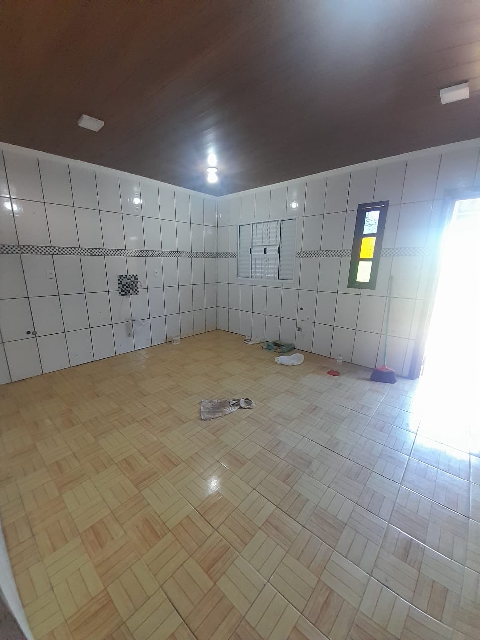 Casa com 1 dormitório, sala e cozinha conjugadas, banheiro, espaço para o carro.