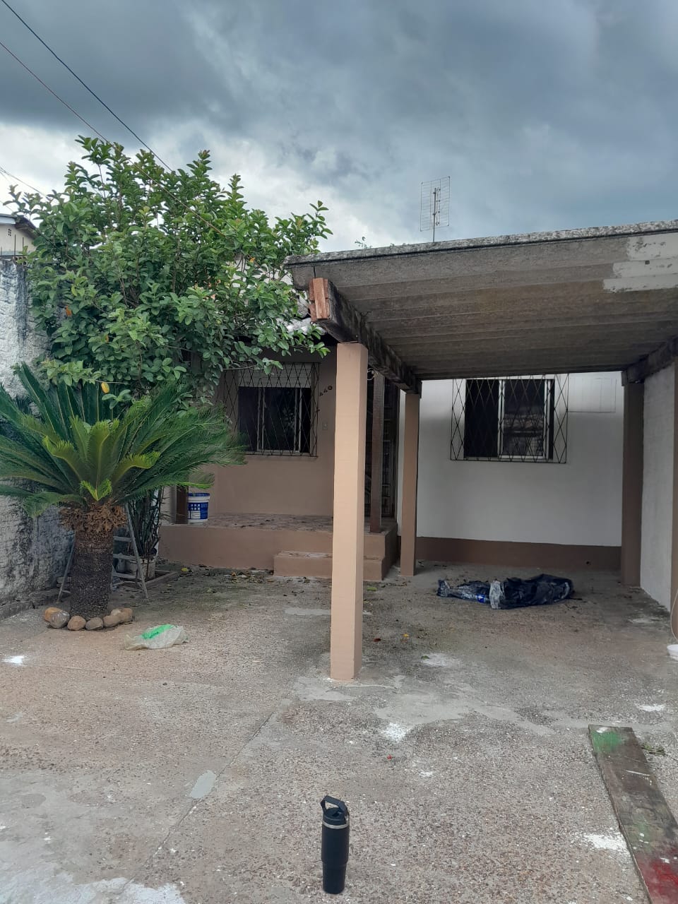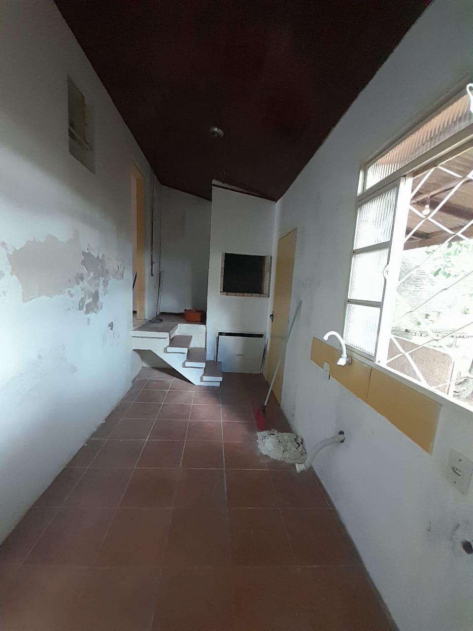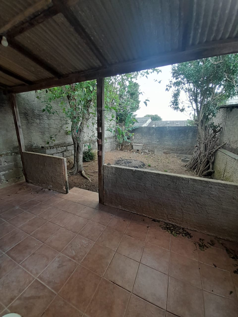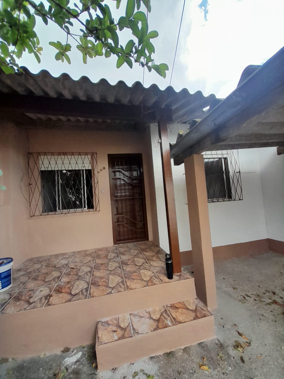 Casa de alvenaria com 2 dormitórios, sala, cozinha, banheiro, área de serviço externa, churrasqueira, pátio frente e fundos, vaga de garagem coberta.