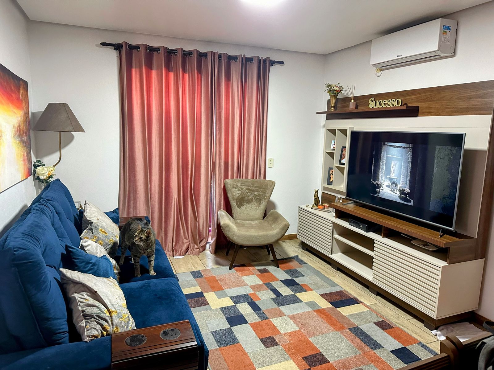 Ficam no AP: cozinha planejada, ar-condicionado nos quartos e na sala, móveis modulados no quarto do casal, armário e espelheiro do WC.