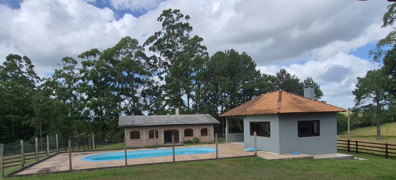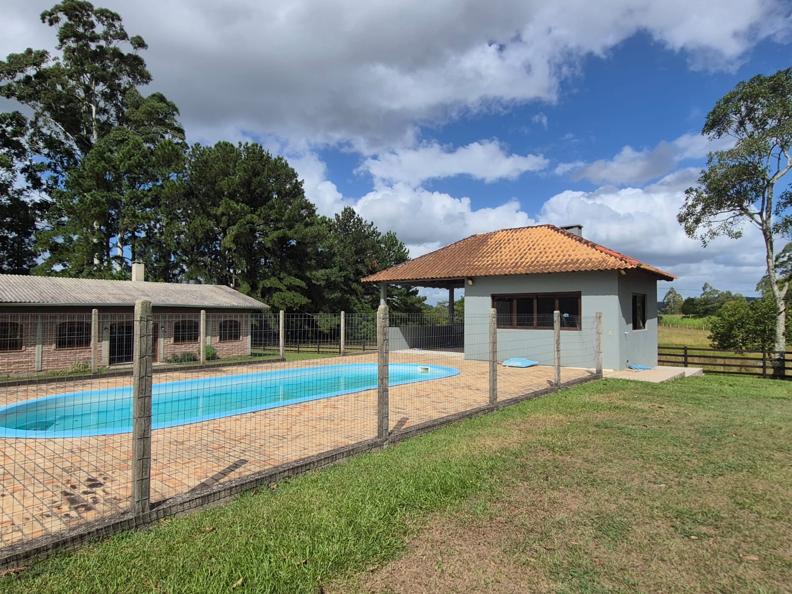 Ótimo sítio de 8 hectares a 10 minutos do centro de Viamão, com 5 suítes, 1 quarto com closed, cozinha, sala de jantar, sala de estar com lareira, lavanderia, piscina com quiosque e churrasqueira, salão de festas com fogão campeiro e churrasqueira, galpão com 4 cocheiras, oficina, casa para caseiro, árvores frutiferas, área para plantação e criação de animais. Todo cercado com 2 lindos açudes.