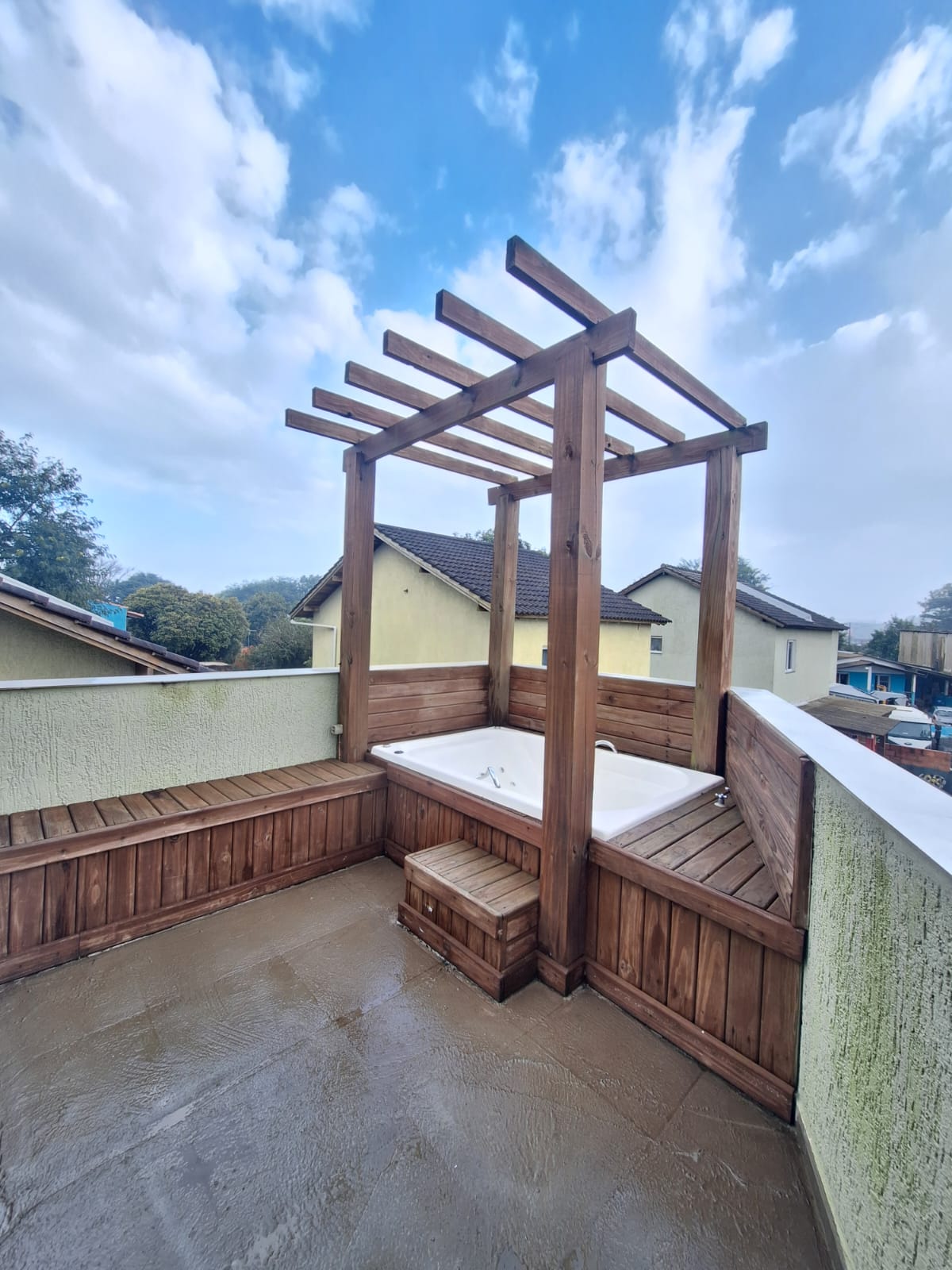 Como grande diferencial, o imóvel possui uma área externa com vista aérea, destacando-se pelo lindo deck de madeira com banheira de hidromassagem, um espaço ideal para momentos de relaxamento e lazer.